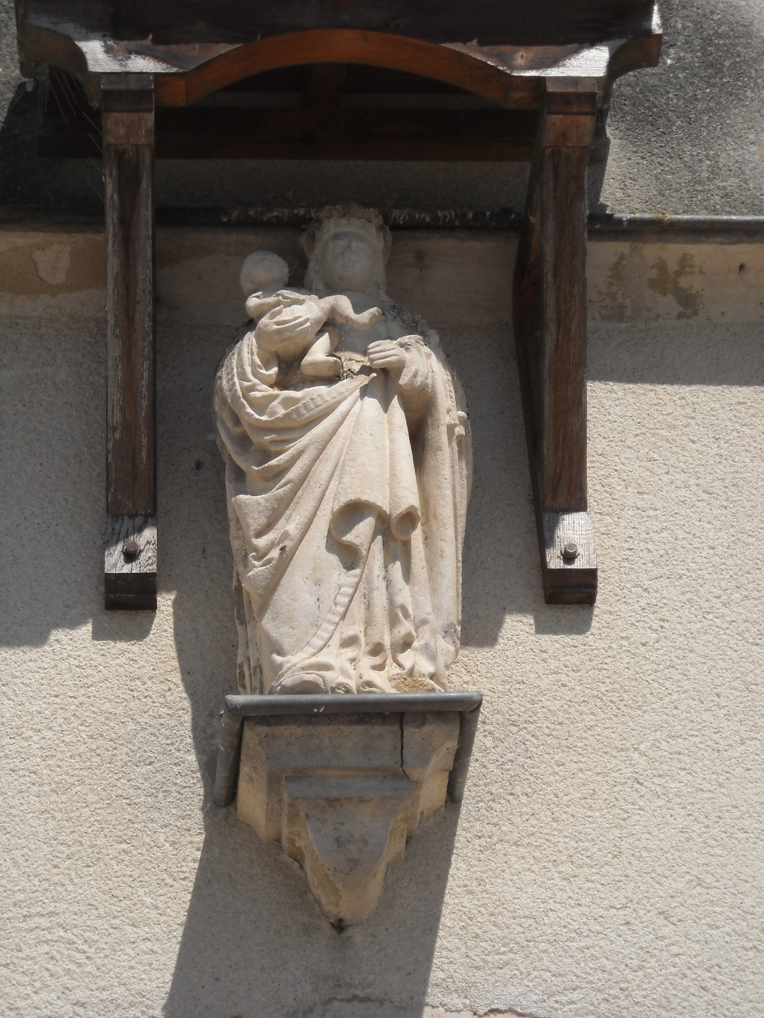 Le tout est couronné, au niveau de l’étage de comble, d’un petit fronton cintré dans lequel sont sculptées les armoiries des « Chartraire et des Bouhier ».